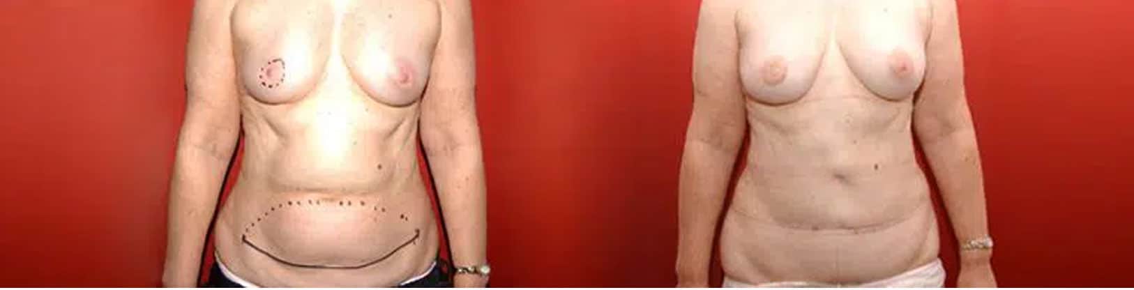 فيما يلي صور توضح نتائج العديد من عمليات إعادة بناء الثدي بواسطة السديلة البطنيّة، سواء كانت فورية أو مؤجّلةً.