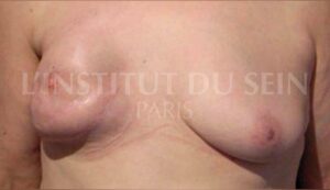 نقص حجم عملية إعادة بناء الثدي الايمن والطية تحت الثدييّة مرتفعة جدًا.