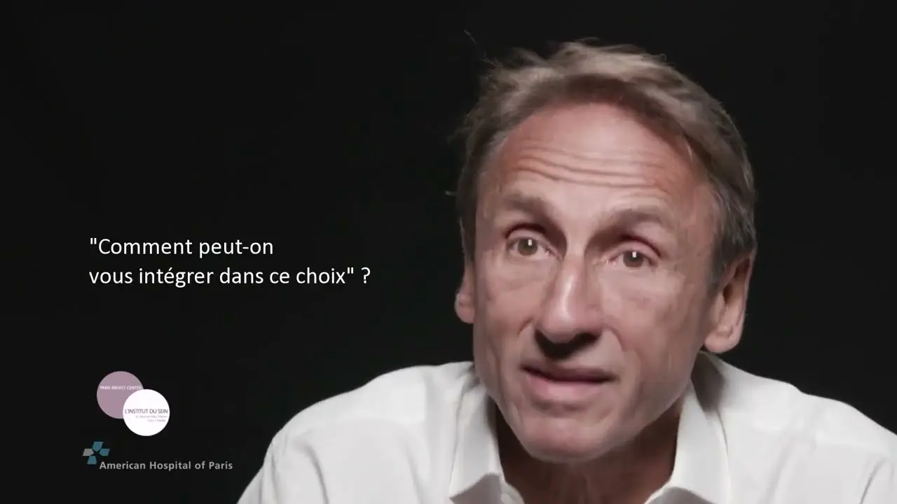 Prendre rendez-vousL’équipe, c’est tous les praticiens qui pourraient prendre en charge la patiente à un moment : donc, les piliers thérapeutiques c’est le chirurgien, le radiothérapeute et le chimiothérapeute mais il y a aussi les radiologues, il y a aussi les spécialiste de l’analyse des tumeurs au microscope, il peut y avoir un psychologue ou un psychiatre dans des cas où l’état psychique de la patiente va nous orienter dans une solution plutôt qu’une autre ; et puis il y a la patiente, à qui à un moment, on va dire voilà il y a un choix, quand le choix aboutit à une solution univoque, on va dire voilà ce que nous vous proposons, et dans un certain nombre de cas, on va lui dire nous hésitons, et, voilà ce qu’on vous propose. Il faut le faire le moins souvent possible parce qu’en fait on assiste aujourd’hui, je trouve, à une espèce de transfert de la responsabilité de la décision de l’équipe médicale vers la patiente, ce qui est terrible… est-ce que vous voulez vous faire enlever sein ou est-ce que vous voulez garder le sein ? moi je vois des patientes qui viennent nous voir en 2eme avis en disant moi je suis perdue on m’a dit vous pouvez garder le sein, vous pouvez enlever le sein…
